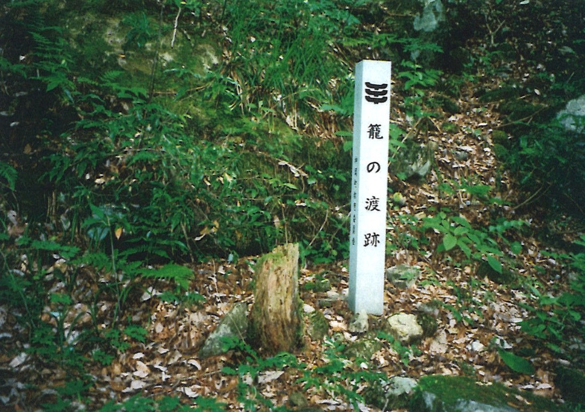 | 解説文 | 神岡町大字谷、飛越国境の国境橋上流、宮川に渡されていたもの、一条の命綱に滑車をつけた篭を吊り、篭に引き綱をつけて手繰りながら、対岸へ往復した。 往昔の交通史を知る上にも重要であり、各地の篭の渡しの中でも、特に有名で広重の絵にも描かれて、天下に紹介され天保11年豊田郡代の「実視画録」にも収められている。 |